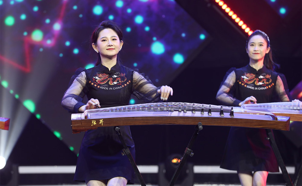 CCTV《花開盛世》為期3天的錄制,即有古箏、古琴、琵琶等多種民族器樂演出,也有聲樂、舞蹈和語言類等其他形式的表演。其中,不論是演出場次還是參與人數(shù),古箏演奏都是本次錄制的重頭戲,所用的古箏,是由弦昇提供的弦昇·晨曦和弦昇·彩云間兩款,共計(jì)兩款30多臺(tái)。岑佳蔚古箏合奏《盛世國樂》?