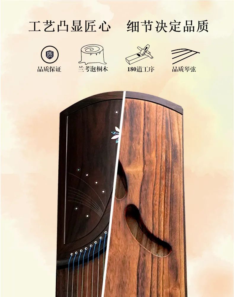 4、定期對古箏進(jìn)行護(hù)理,可用干燥的軟毛刷或軟布等清理擦拭琴體,盡量不用潮濕的工具清潔,更不可用水淋洗;