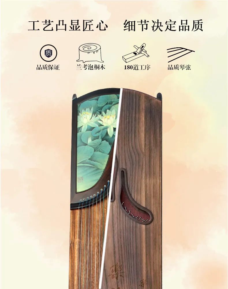 4、定期對(duì)古箏進(jìn)行護(hù)理,可用干燥的軟毛刷或軟布等清理擦拭琴體,盡量不用潮濕的工具清潔,更不可用水淋洗;