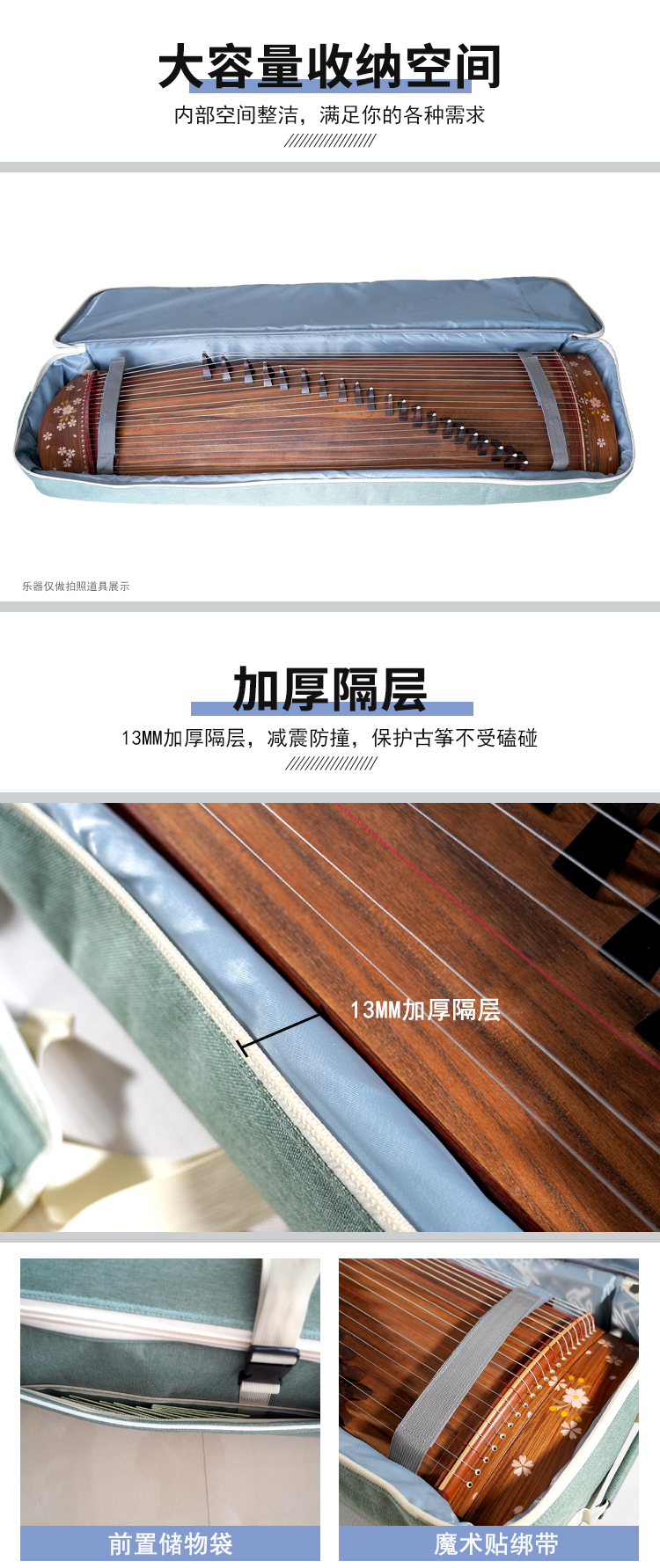 4、定期對(duì)古箏進(jìn)行護(hù)理,可用干燥的軟毛刷或軟布等清理擦拭琴體,盡量不用潮濕的工具清潔,更不可用水淋洗;