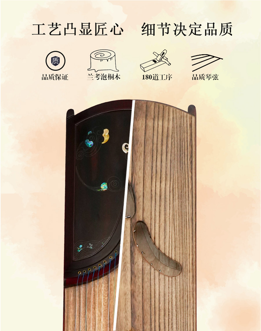 4、定期對古箏進(jìn)行護(hù)理,可用干燥的軟毛刷或軟布等清理擦拭琴體,盡量不用潮濕的工具清潔,更不可用水淋洗;